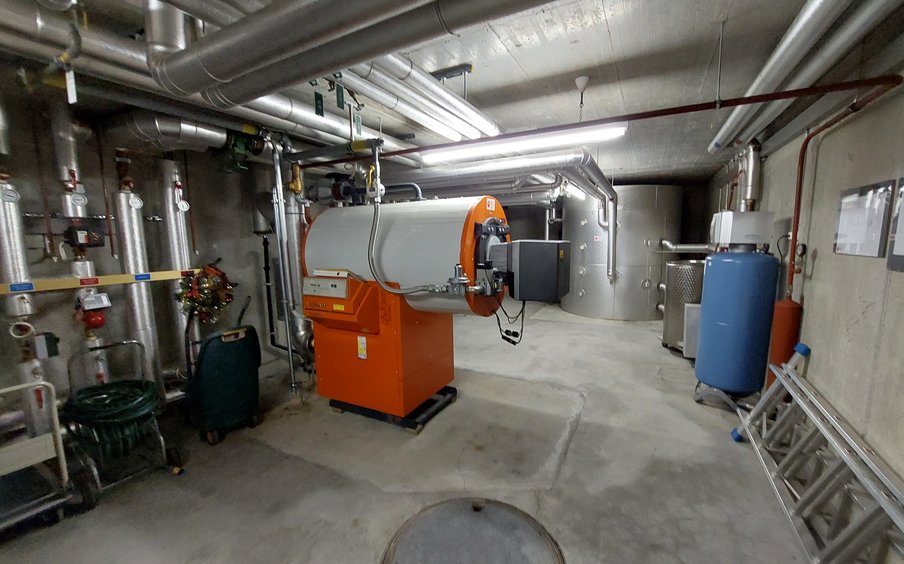 Nach der Entscheidung für das Erdsonden-Wärmepumpensystem begann die s3 GmbH mit der detaillierten Planung. Um die Parameter (Wärmeleitfähigkeit und Wärmekapazität) für die Auslegung und Simulation der Erdsonden zu verifizieren, wurde eine Probebohrung mit einer einzelnen Sonde à 320 m und ein Thermal Response Test (TRT) durchgeführt und ausgewertet. Damit konnte die Dimensionierung der Erdsonden optimiert werden. Unsere Schwesterfirma 3E Elektro führte zusätzlich eine Lastgangmessung durch, um zu prüfen, ob der bestehende elektrische Anschluss verstärkt werden muss. Ergebnis: Der bestehende Anschluss ist ausreichend, es sind keine Verstärkungen erforderlich. Im Anschluss an die endgültige Dimensionierung konnte das Ausschreibungsprojekt gestartet werden. Die Arbeiten wurden von der s3 ausgeschrieben und konnten an geeignete Unternehmen vergeben werden. Die s3 begleitet den Heizungsersatz während der Umsetzung weiter.